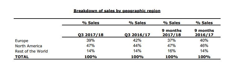 در ادامه گزارش مالی شرکت,منطقه North America با 47درصد پرسودترین منطقه برای یوبی سافت بوده است و بعد از آن اروپا با 39 درصد در جایگاه دوم قرار گرفته است.