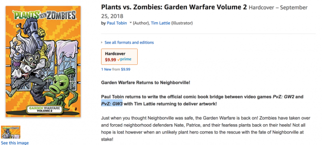 Amazon به تازگی رمان گرافیکی Plants vs. Zombies: Garden Warfare Volume 2 را برای عرضه در سپتامبر سال جاری لیست کرده و بر اساس سایت معتبر