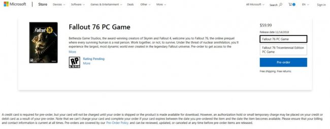 طبق گفته شرکت Bethesda بازی Fallout 76 تنها بر روی https://Bethesda.net عرضه خواهد شد و خبری از نسخه Steam بازی نخواهد بود.با این وجود بازی هم اکنون بر روی  Windows 10 Store قابل پیش خرید است.