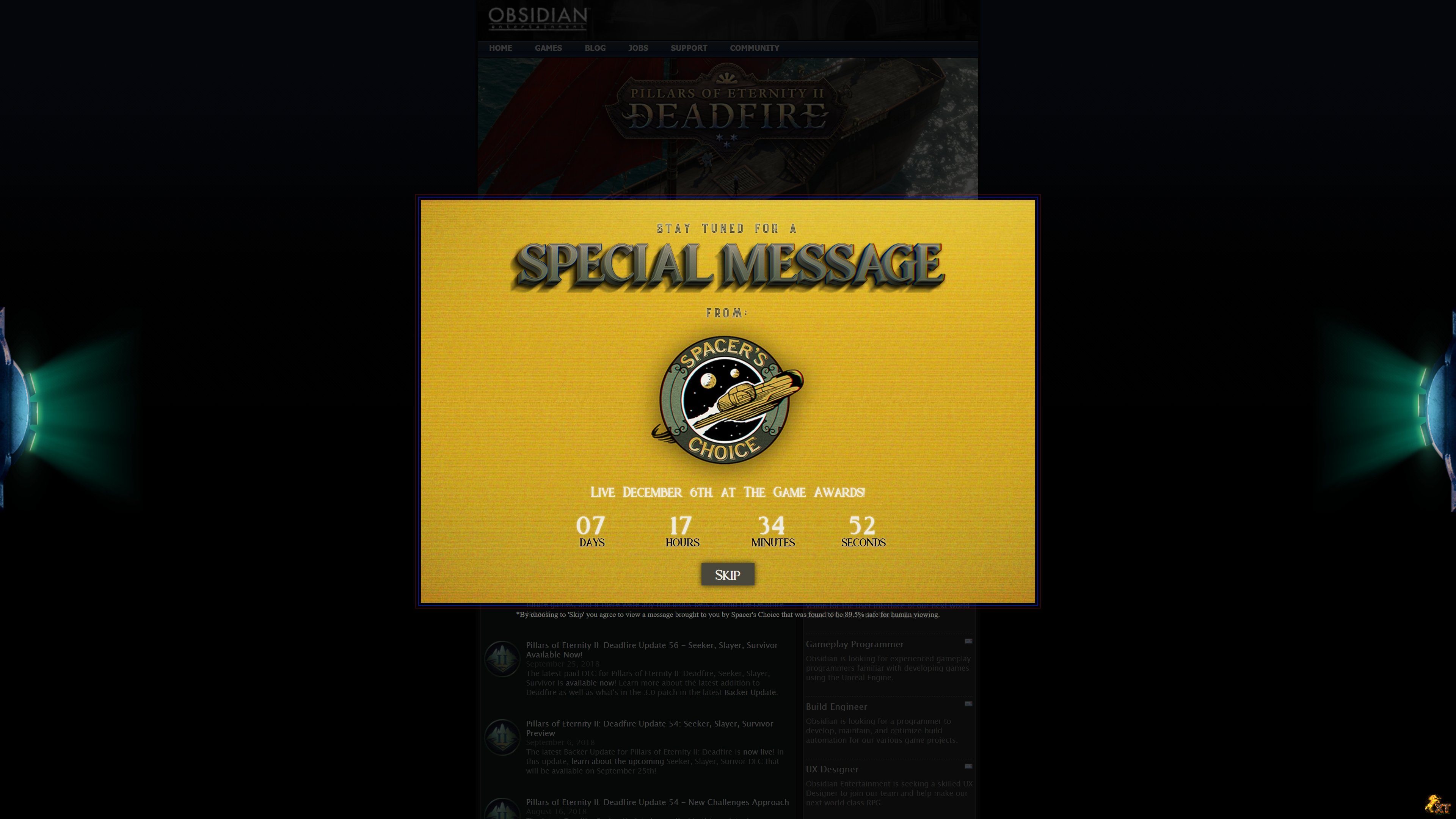 Obsidian شوید، با دو شمارش معکوس مختلف مواجه خواهید شد که یکی از آنها زمان رونمایی و اعلامیهای از سوی "Spacer's Choice" را نشان میدهد.