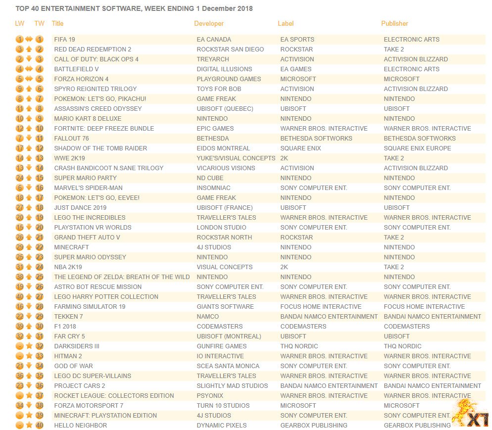 سازمان تحقیقاتی Ukie امروز لیست پرفروشترین بازی های این هفته UK را منتشر کرد.طی این هفته بازی FIFA 19 همچنان در صدر قرار دارد.نکته عجیب این لیست حضور Darksiders III در رتبه 32 است!عنوانی که به تازگی منتشر شده بود.