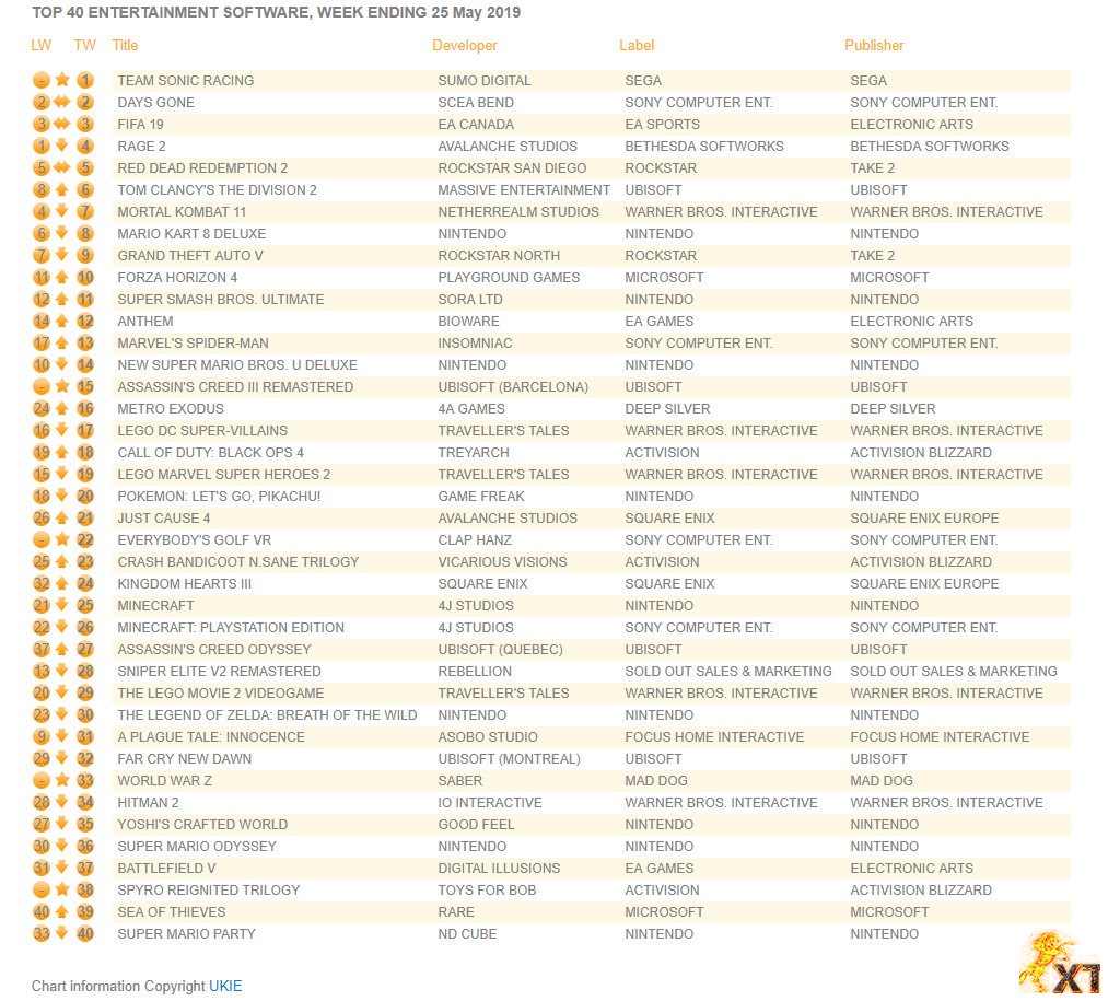 لیست پر فروشترین بازی های این هفته UK منتشر شد| Team Sonic Racing در صدر تاریخ : 1398.03.07 نویسنده : yonesxtr نظرات : 0 بازدیدها : 617 1 سازمان تحقیقاتی Ukie امروز لیست پرفروشترین بازی های این هفته UK را منتشر کرد.طی این هفته بازی Team Sonic Racing توانسته در صد جدول قرار بگیرد.جدول پرفروشترین عنوان های این هفته به صورت زیر می باشد. کلید واژه ها : اخرین اخبار بازی, پر فروشترین بازی های هفته UK, اخبار بازی, اخبار فروش بازی دسته بندی : بخش بازی های رایانه ای / اخبار بازی