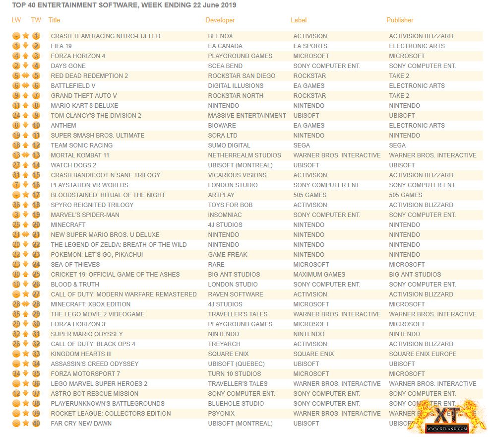 لیست پر فروشترین بازی های این هفته UK منتشر شد|Crash Team Racing Nitro-Fueled درصدر تاریخ : 1398.04.03 نویسنده : yonesxtr نظرات : 0 بازدیدها : 801 1 سازمان تحقیقاتی Ukie امروز لیست پرفروشترین بازی های این هفته UK را منتشر کرد.طی این هفته بازی Crash Team Racing Nitro-Fueled که به تازگی منتشر شده است توانسته در صدر جدول جای بگیرد.جدول پرفروشترین عنوان های این هفته به صورت زیر می باشد. کلید واژه ها : اخرین اخبار بازی, پر فروشترین بازی های هفته UK, اخبار بازی, اخبار فروش بازی دسته بندی : بخش بازی های رایانه ای / اخبار بازی