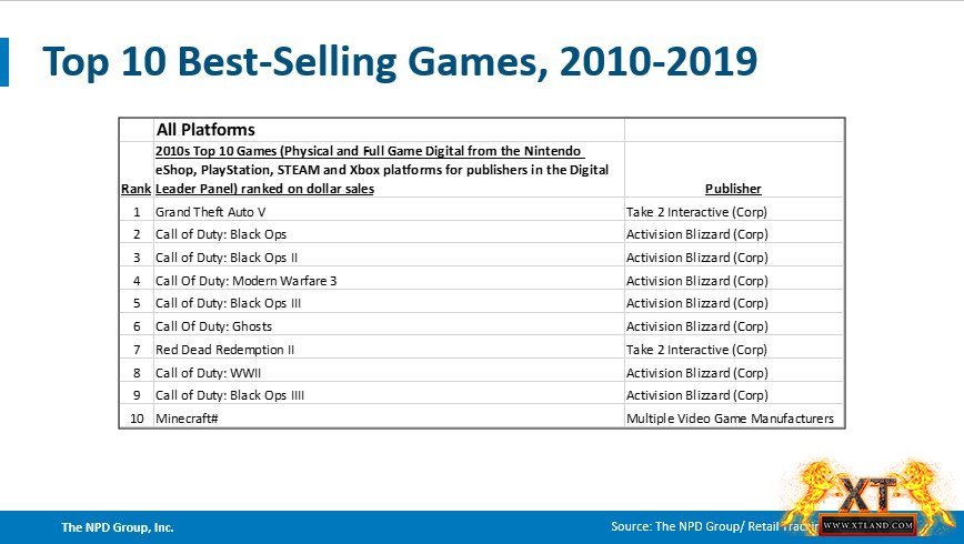 اخیرا گروه آنالیزی NPD از پرفروشترین عنوان های دهه اخیر کشور آمریکا رونمایی کرده اند که طی آن شاهد بازی های Call Of Duty و راک استار هستیم!